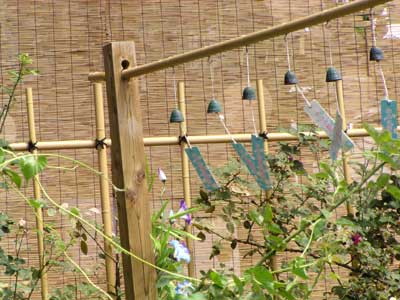 <夏に風鈴を吊るす理由は風鈴の音は魔を払うこと。 風鈴は仏教渡来と共に日本に来た。> |